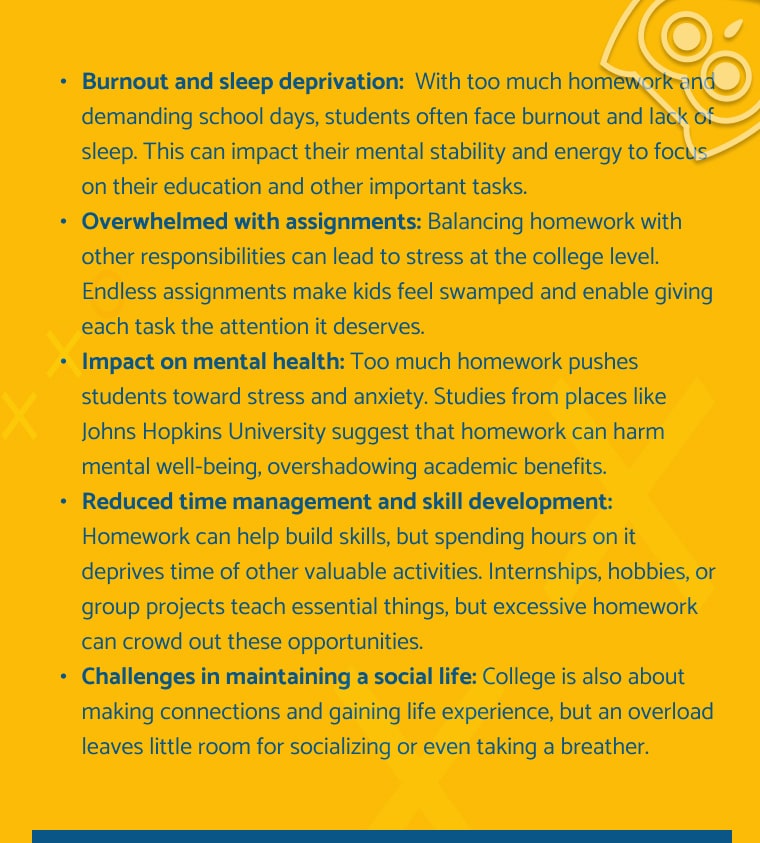 While homework can be helpful, it also has its downsides, especially for college students who are juggling classes, work, and social lives. Here’s a look at some of the main drawbacks: