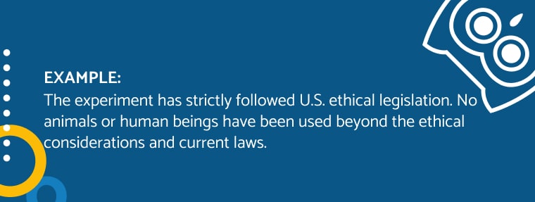 - Ethical Considerations. Work on this part if your experiment involved human subjects/animals or raised sensitive ethical concerns. Briefly describe the ethical approval process. Talk about how you ensured ethical conduct during the experiment.