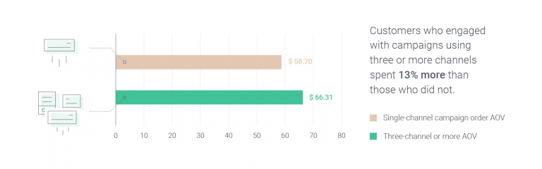 In order to test for that variable, researchers looked at the average order value (AOV) for customers coming from campaigns using three or more channels.